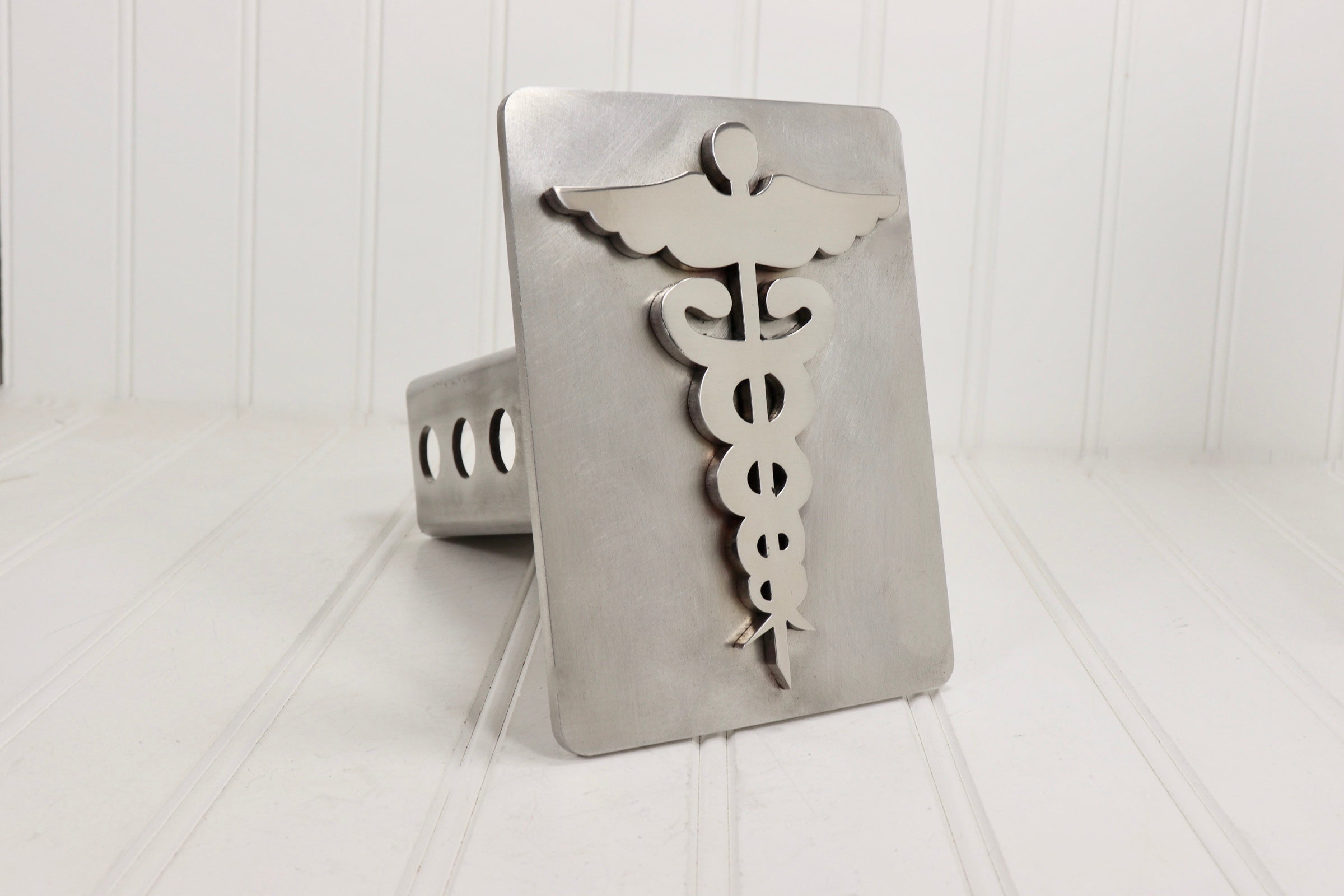 Stainless Steel Caduceus Medical Symbol Hitch Cover – Fits 2” Hitch Receiver – Free Shipping