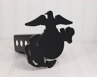 This USMC earth, globe, and anchor hitch cover is made from carbon steel and powder coated matte black.