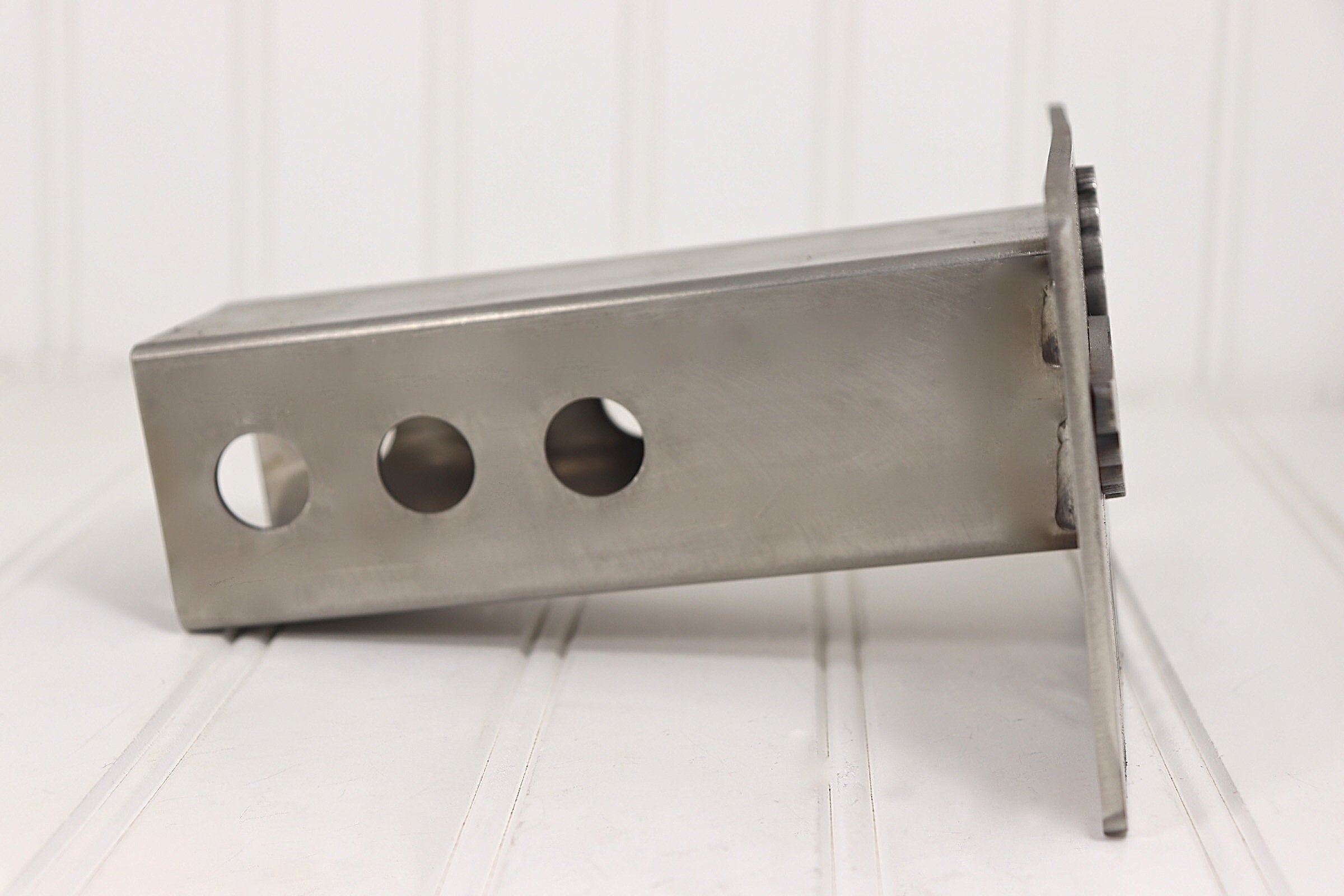 Fits a standard 2" receiver. Square tubing 6" long with 3 sets of holes.