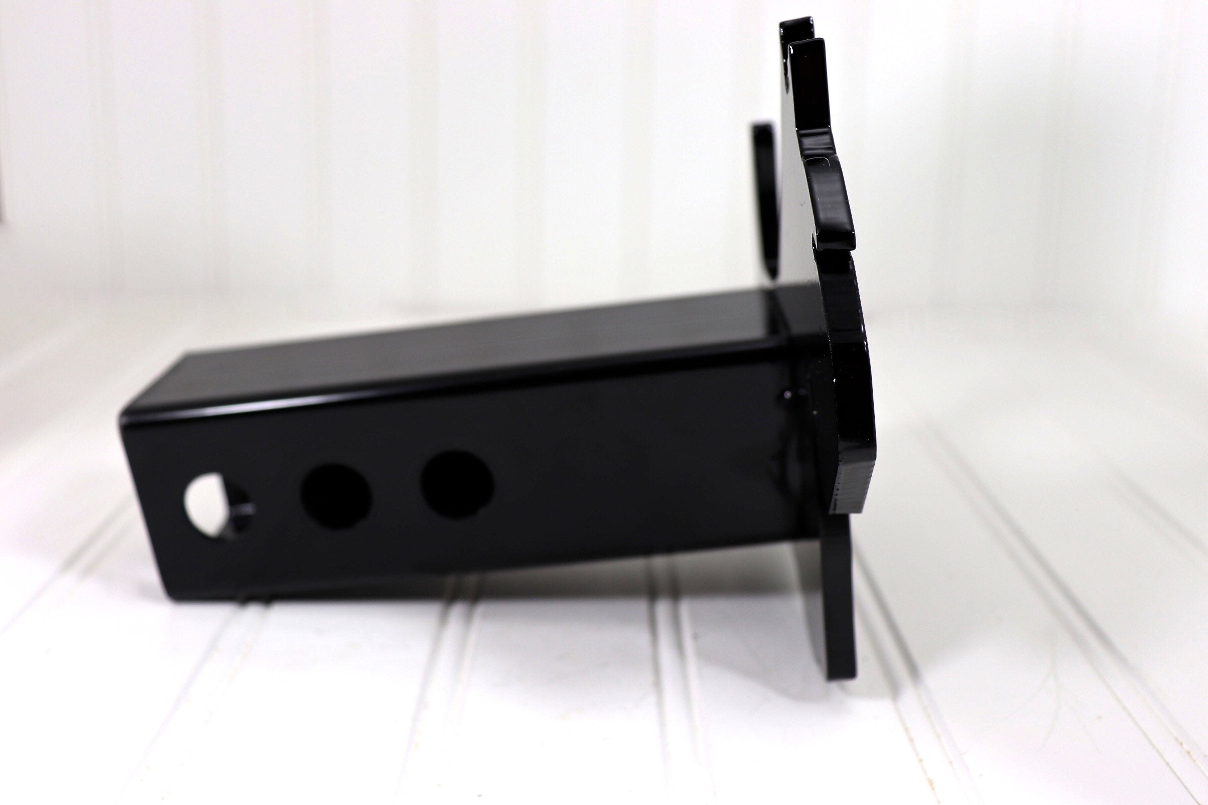 The receiver is 6" long and the hitch cover fits a standard 2" receiver. Made with three sets of holes for a perfect fit.